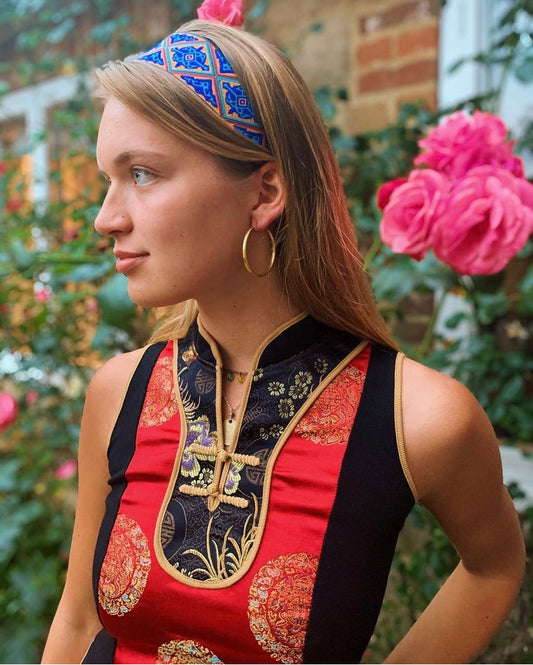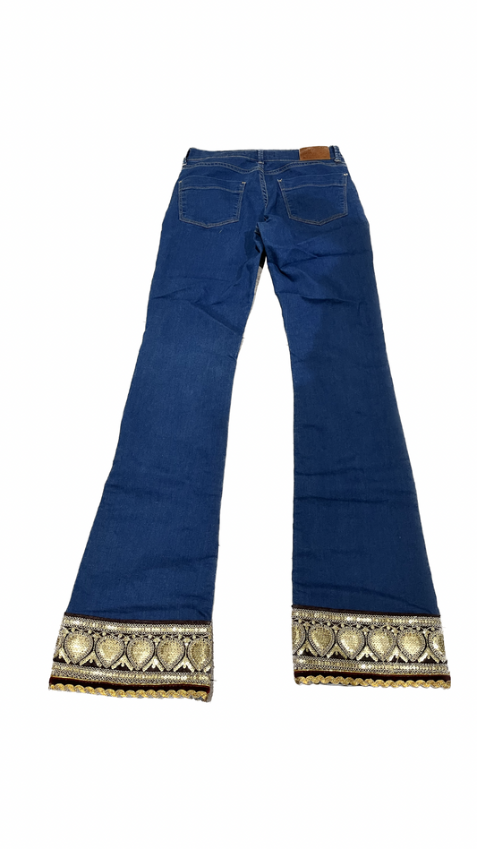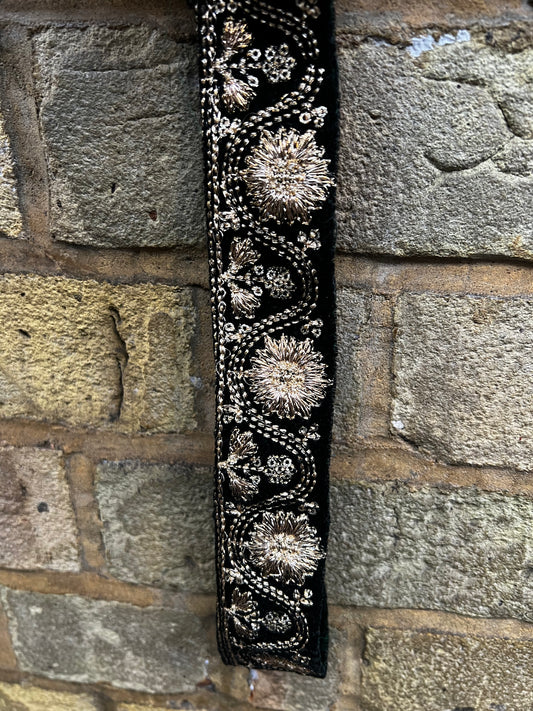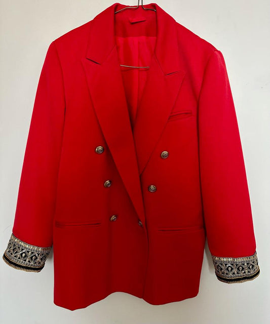 Pinstripe Blazer | Green and Gold velvet trims | SIZE 8